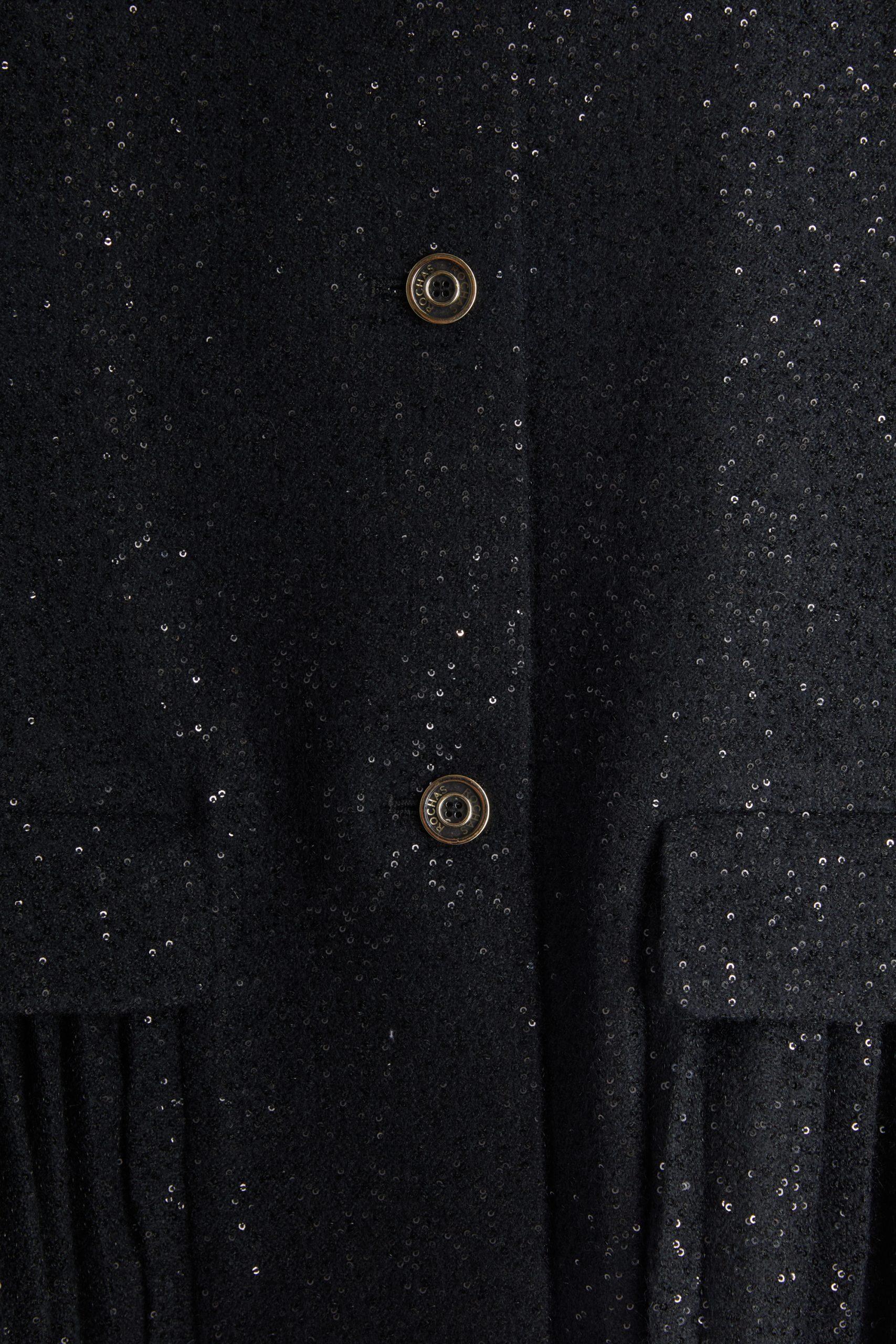 Veste courte ornée de sequins, détails plissés sur le bas et au dos de la veste